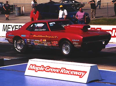 Mike launches the '67 at Maple Grove while Denise looks on in the background. (Competition Photos)