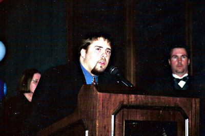 Mike giving a speech at the NHRA Division 1 Awards Banquet.
