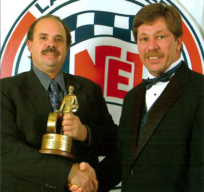 Ray receives his trophy for the 2003 National Open Series Championship from Bob Lang.